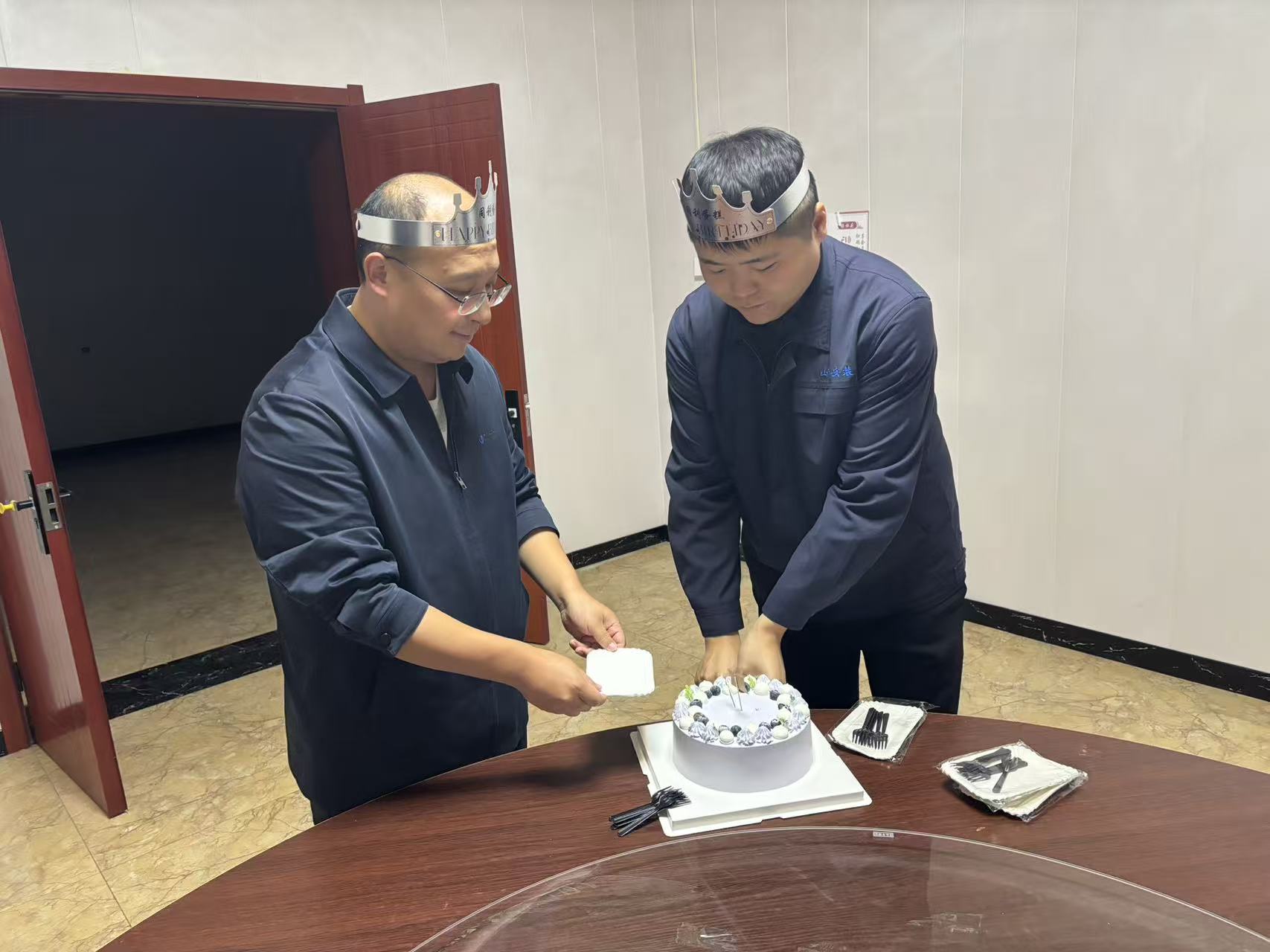 生日会开始,项目负责人周腾首先向两位寿星送上了祝福,他感慨道,项目建设能一步步稳步推进,离不开每一位职工的坚守与付出;项目部不仅会全力保障工程的进度与质量,更会一直把大家的需求放在心上,努力为所有人营造出温暖的“家文化”氛围,这番真诚的话语赢得了大家的一致认可。