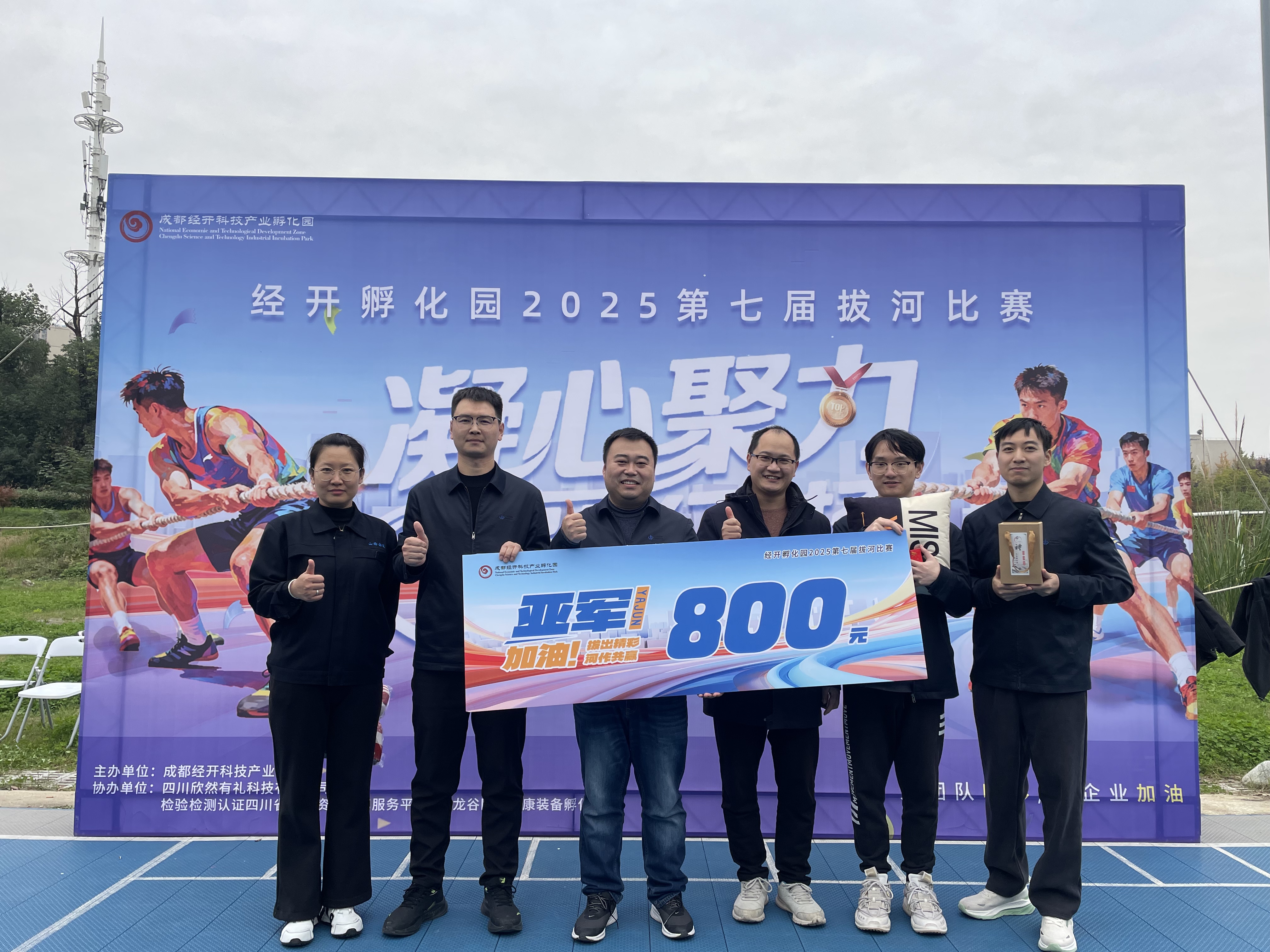 近日,西南工程公司工会积极组织职工参加由成都经开科技产业孵化园举办的第七届拔河比赛,此次赛事在园区运动场激情开赛,来自园区9家单位的参赛队伍同台竞技、角逐荣光。西南工程公司代表队凭借默契协作与顽强毅力一路过关斩将,最终斩获比赛亚军,用实力深刻诠释了“团结就是力量”的核心内涵。