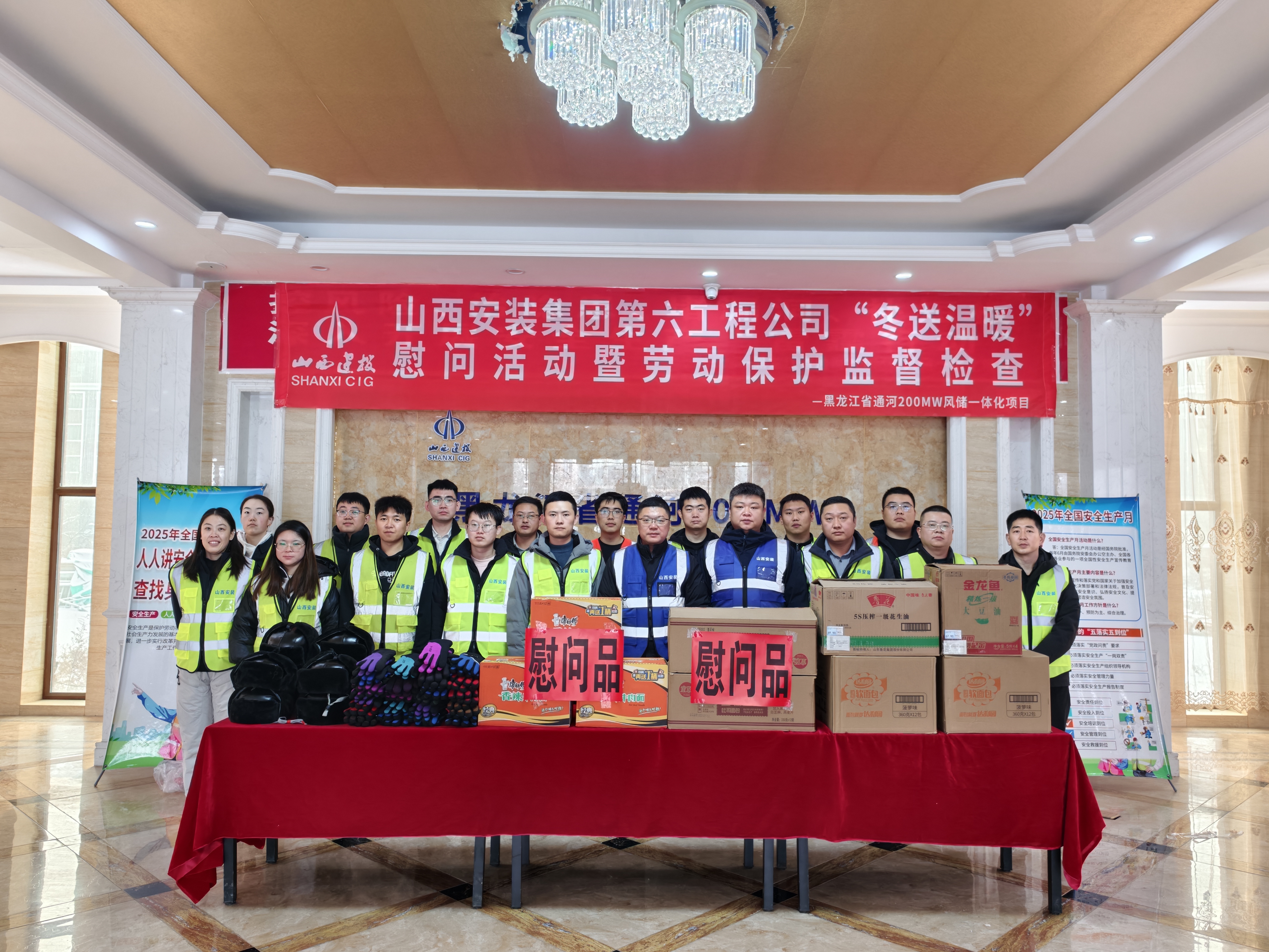 寒冬送暖,情系一线。11 月 27 日,工程公司工会精准开展 “冬送温暖” 活动,并同步推进劳动保护监督检查工作。工程公司工会主席武晋辉带队深入各项目现场,为坚守岗位的职工及劳务人员送上御寒物资与冬日关怀,在传递组织温暖的同时,进一步压实责任、筑牢安全生产防线。