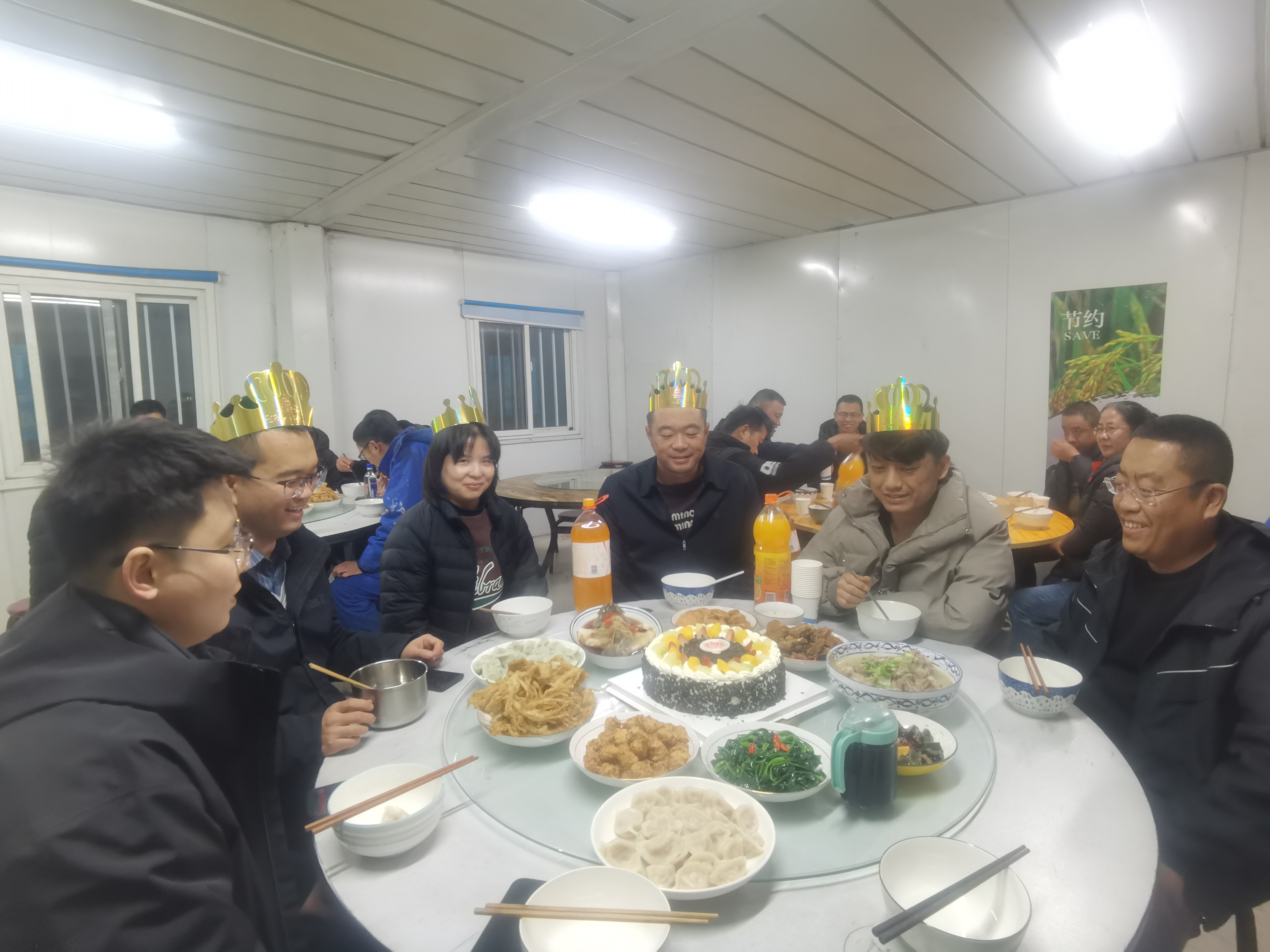 项目工会小组提前精心策划筹备,采购生日蛋糕,联系食堂师傅准备一道道色泽诱人、香气扑鼻的美味菜肴,为寿星们打造了一场温馨满满的生日会。