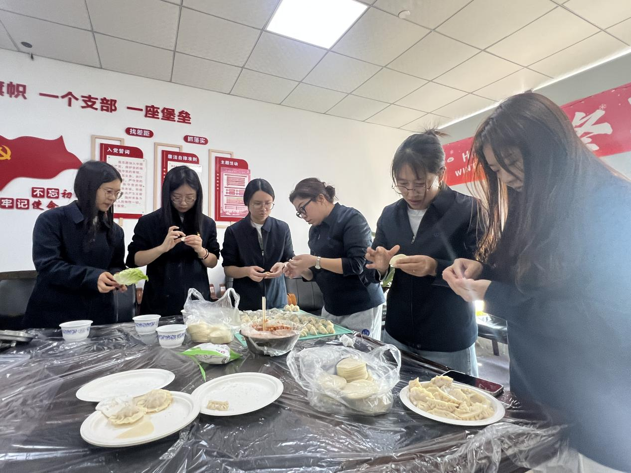 活动过程中,大家一边忙碌,一边交流工作与生活中的趣事,彼此间的距离在轻松愉快的氛围中不断拉近。一张张薄薄的饺子皮,在大家的手中变成了承载着温暖与情谊的美味佳肴。经过一个多小时的努力,一排排独具特色的饺子整齐排列,形态各异却都饱含心意。热气腾腾的饺子端上桌时,香气四溢,大家围坐在一起品尝着自己亲手包的饺子,每一口都充满了幸福的味道,温暖驱散了冬日的严寒。