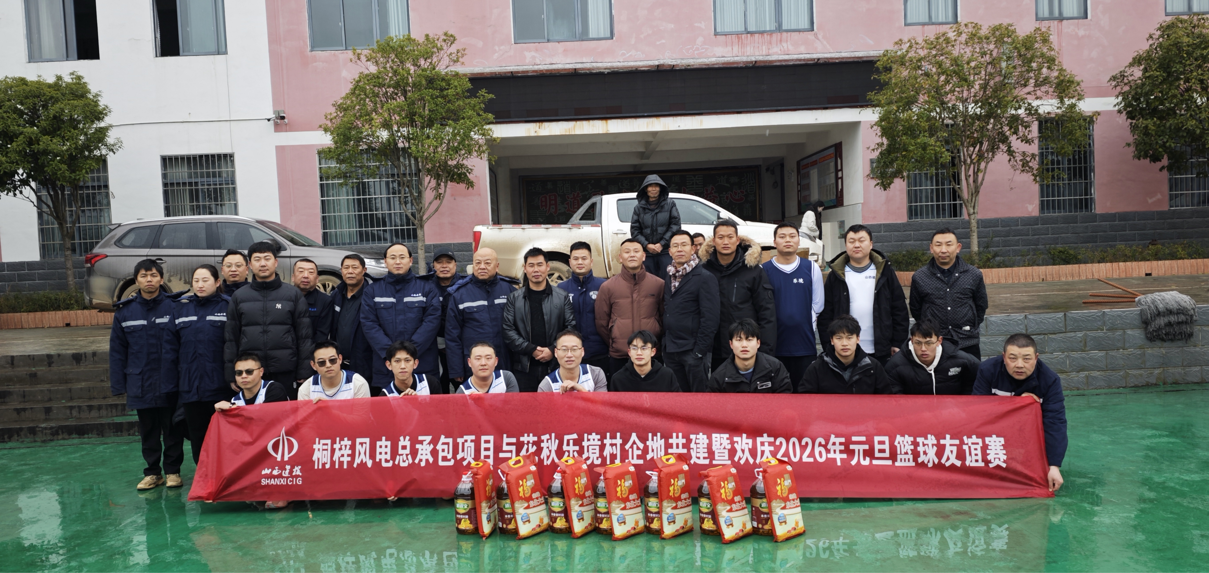 岁序更替,华章日新。在2026年元旦佳节来临之际,为丰富项目建设者与当地村民的精神文化生活,深化企地共建情谊,2026年1月2日下午,桐梓风电总承包项目项目部与花球乐境村联合举办的“迎元旦,促共建”篮球友谊赛在花秋村中学操场上热血开赛。凛冽的寒风挡不住运动的热情,赛场上的呐喊声、欢呼声交织成冬日里最温暖的旋律。