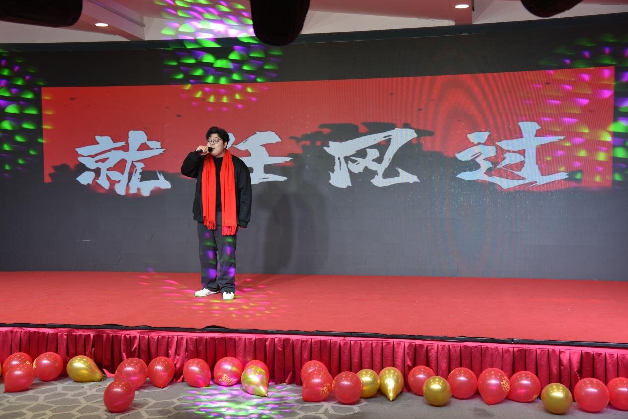 联欢会在激昂的独唱《麒麟》中拉开帷幕,表演者贾宇琨以铿锵唱腔瞬间点燃全场热情。