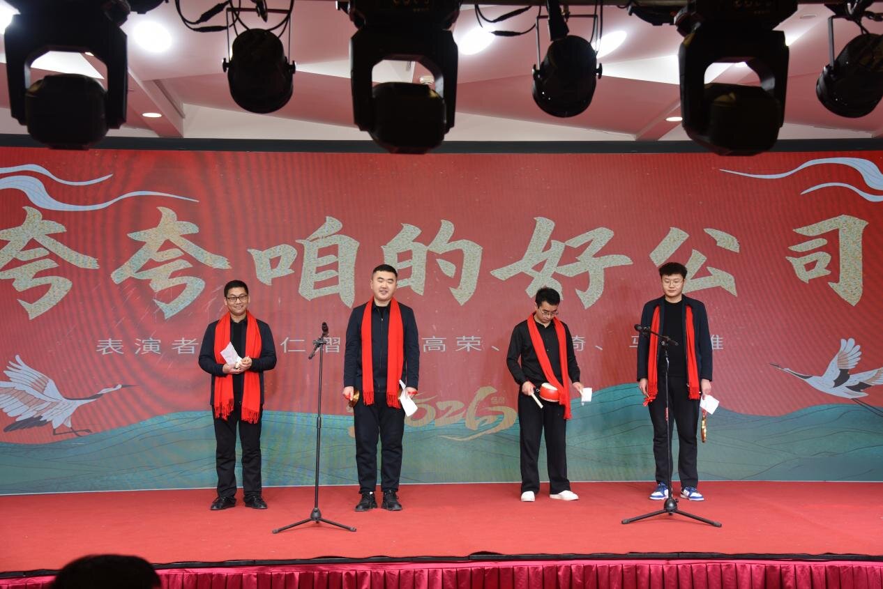 灵丘供热项目带来的三句半《夸夸咱的好公司》,以诙谐节奏细数企业发展成果,赢得阵阵掌声;大合唱《明天会更好》传递温暖期许。