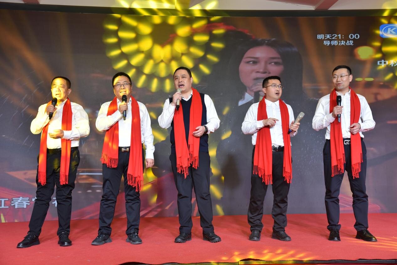 领导班子齐唱经典红歌《珊瑚颂》,将联欢会气氛推向高潮。