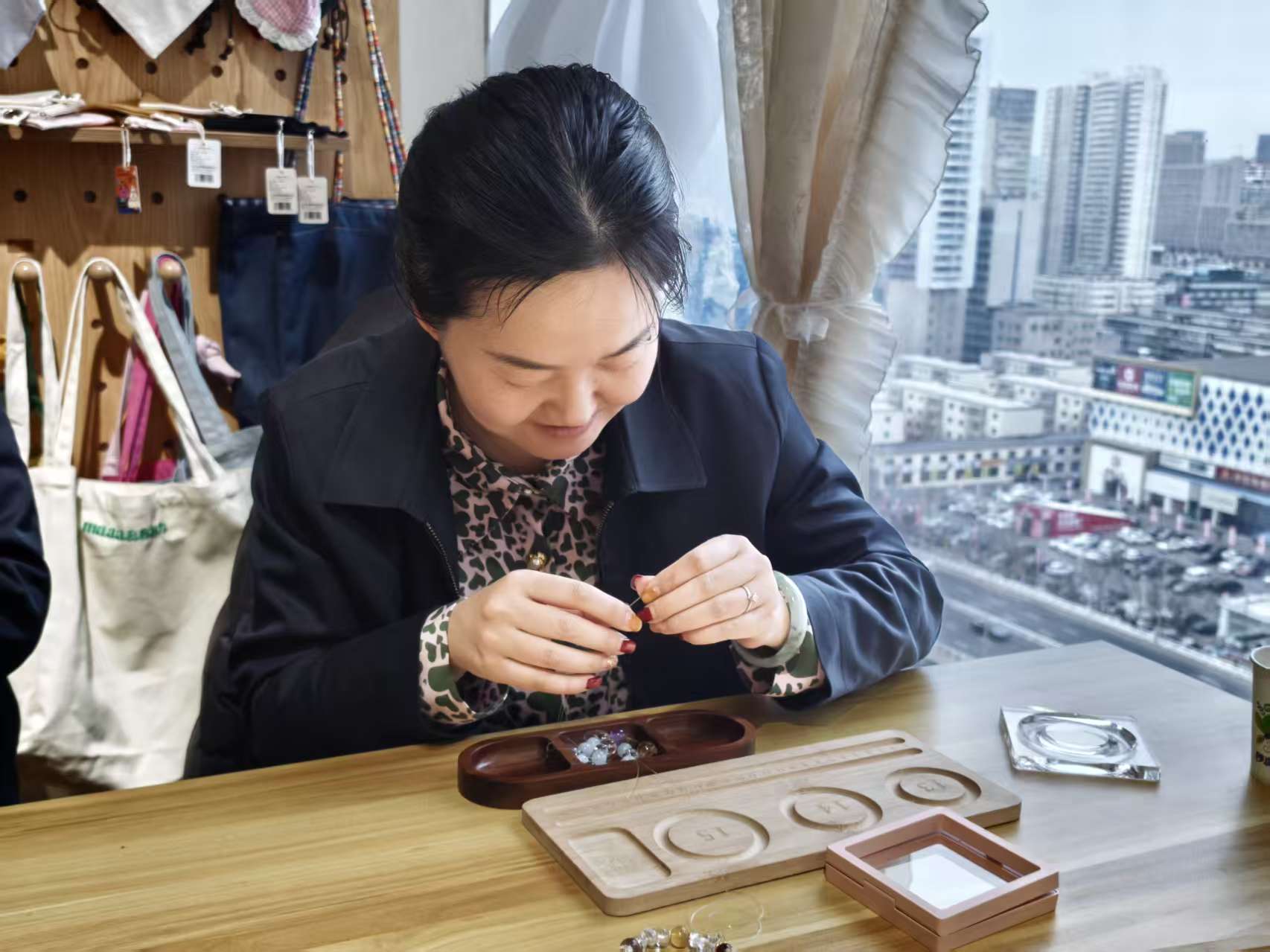 在温馨舒适的氛围中,这场沉浸式文化体验成为女职工们放松身心的“治愈时刻”。大家暂时放下工作的琐碎与压力,专注于手中的创作,在穿珠、打结、调整的过程中感受手工艺术的独特魅力。现场欢声笑语不断,女职工们相互欣赏作品、分享心得,在交流中增进情谊,在创作中重拾生活的雅致与诗意,充分展现了新时代女性的多元风采。