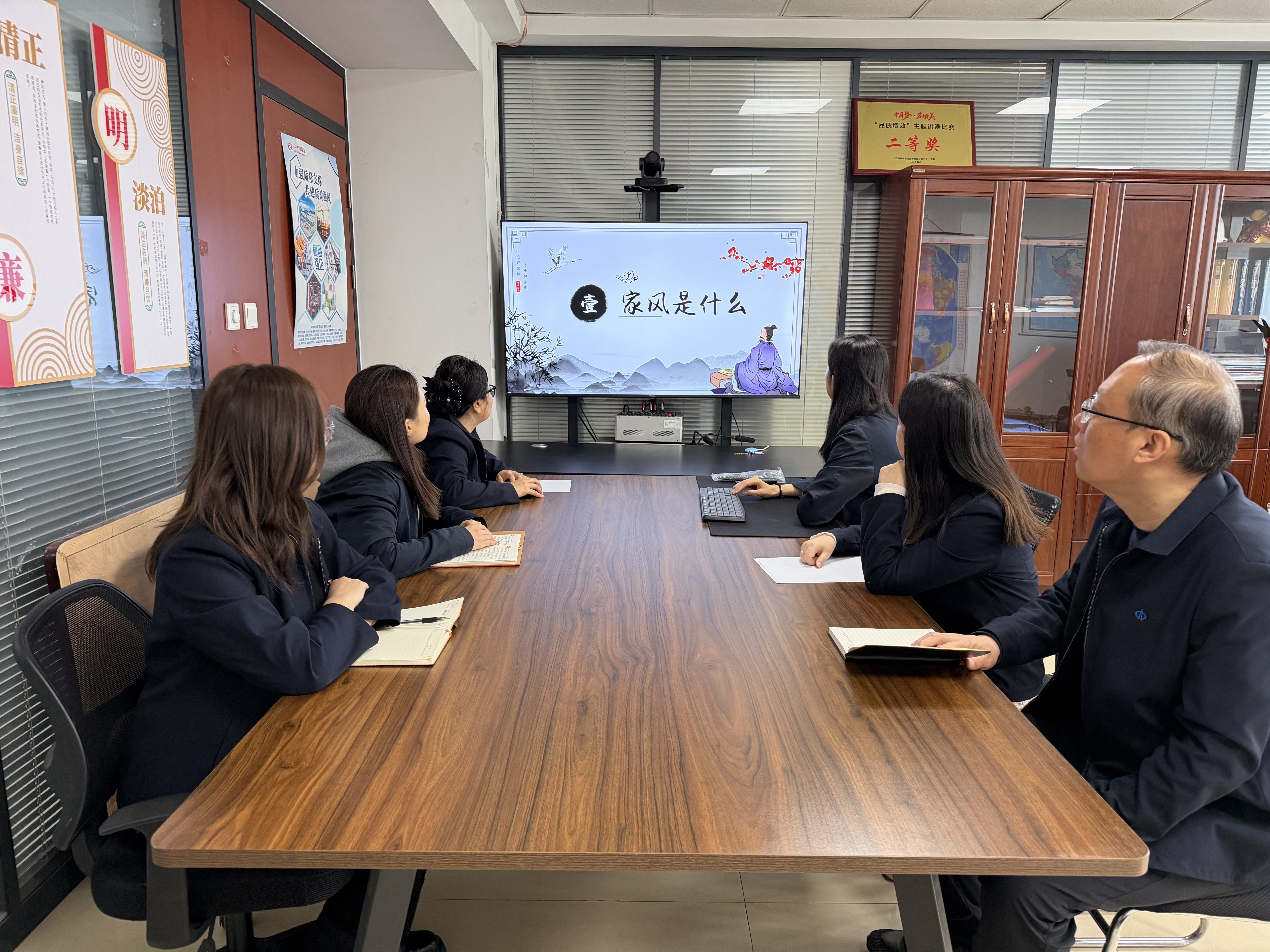 课件学习结束后,全体人员集中观看了家风教育宣传片《传承》。宣传片以真实的人物故事、真挚的情感表达,生动展现了优秀家风的传承历程,传递了廉洁修身、廉洁齐家的正能量,让在场人员在沉浸式观看中感悟优秀家风的精神力量,进一步强化了廉洁自律意识,坚定了涵养清廉家风、守护家庭幸福的信念。