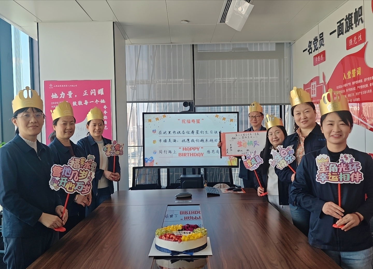 活动现场精心布置,氛围感拉满。新鲜水果点缀的生日蛋糕香气四溢,金色的生日皇冠熠熠生辉,会议室处处洋溢着温馨与温暖。生日会伊始,工程公司工会向全体寿星致以诚挚的生日问候与美好祝愿。集体生日会是工程公司践行“以人为本”理念、深化职工关怀的重要举措,工会将持续把暖心服务落到实处,让每一位职工都能在工程公司大家庭中收获温暖、成长成才。
