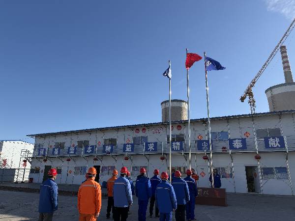 升旗仪式结束后,项目经理发表讲话,话语铿锵有力、催人奋进。此次升国旗仪式,既是对祖国繁荣昌盛的诚挚祝福,更是一次深刻的精神洗礼和思想动员,旨在进一步激发全体人员的爱国热情和工作斗志。当前,国电大同项目正处于工程推进的关键攻坚阶段,虽面临诸多考验,但全体人员始终坚守岗位、攻坚克难、奋勇争先,用实干诠释责任、用担当书写使命。他希望全体管理人员以此次升旗仪式为新的起点,将满腔爱国热情转化为攻坚克难、干事创业的实际行动,严格恪守工程质量、安全、进度底线,秉持精益求精的工匠精神,细化工作举措、严把细节关口,全力以赴推进项目建设,为实现“绿色煤电”发展目标添砖加瓦、贡献力量。