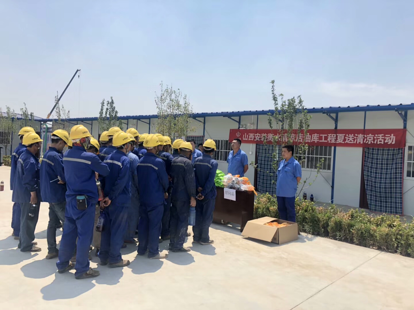 目前正值夏季高温时节,气温日益炎热,工人师傅们却仍然坚守在一线岗位上。为了保障广大职工和农民工的健康权益,让一线的员工清凉度过暑期,第六工程公司衡水项目部项目经理曹日旭和项目部全体管理人员积极行动起来,细致做好防暑降温工作,开展送“夏送清凉”活动,为一线员工送来酷暑中的一丝清凉。